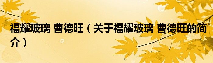 大家好,福耀玻璃 曹德旺,關于福耀玻璃 曹德旺的簡介很多人還不知道,現在讓我們一起來看看吧!
