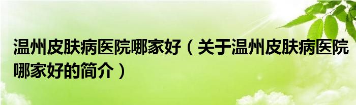 本文關(guān)于溫州皮膚病醫(yī)院哪家好的簡(jiǎn)介就講解完畢,希望對(duì)大家有所幫助。