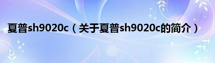 大家好,夏普sh9020c,關于夏普sh9020c的簡介很多人還不知道,現在讓我們一起來看看吧!