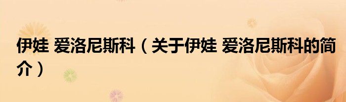 本文關(guān)于伊娃 愛(ài)洛尼斯科的簡(jiǎn)介就講解完畢,希望對(duì)大家有所幫助。