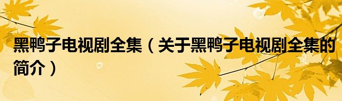 本文關于黑鴨子電視劇全集的簡介就講解完畢,希望對大家有所幫助。