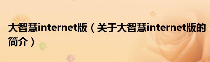 大家好,大智慧internet版,關于大智慧internet版的簡介很多人還不知道,現在讓我們一起來看看吧!
