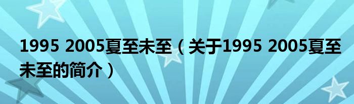 本文關于1995 2005夏至未至的簡介就講解完畢,希望對大家有所幫助。