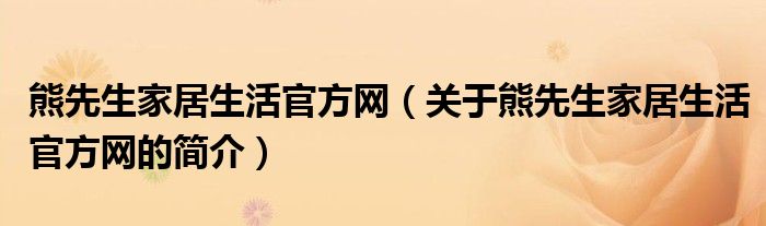大家好,熊先生家居生活官方網,關于熊先生家居生活官方網的簡介很多人還不知道,現在讓我們一起來看看吧!