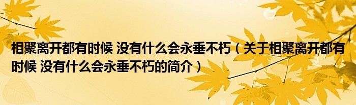 本文關(guān)于相聚離開(kāi)都有時(shí)候 沒(méi)有什么會(huì)永垂不朽的簡(jiǎn)介就講解完畢,希望對(duì)大家有所幫助。