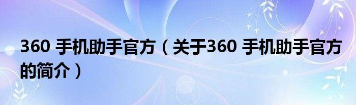 本文關(guān)于360 手機助手官方的簡介就講解完畢,希望對大家有所幫助。