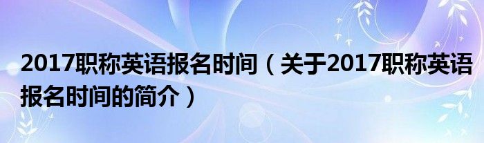 本文關于2017職稱英語報名時間的簡介就講解完畢,希望對大家有所幫助。