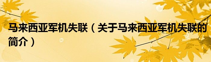 本文關于馬來西亞軍機失聯的簡介就講解完畢,希望對大家有所幫助。