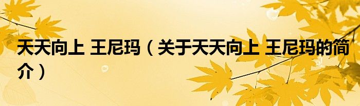 大家好,天天向上 王尼瑪,關于天天向上 王尼瑪的簡介很多人還不知道,現在讓我們一起來看看吧!