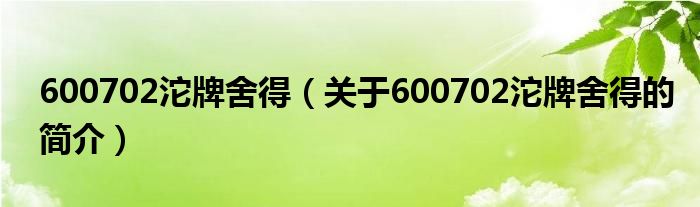 本文關于600702沱牌舍得的簡介就講解完畢,希望對大家有所幫助。