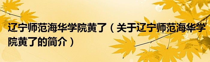 大家好,遼寧師范海華學院黃了,關于遼寧師范海華學院黃了的簡介很多人還不知道,現在讓我們一起來看看吧!