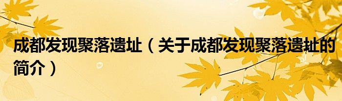本文關于成都發現聚落遺址的簡介就講解完畢,希望對大家有所幫助。