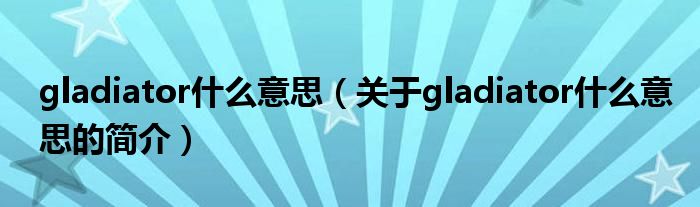 本文關于gladiator什么意思的簡介就講解完畢,希望對大家有所幫助。