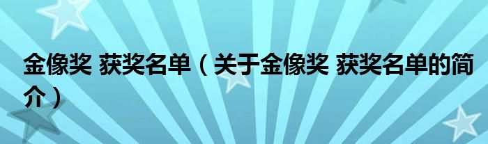 本文關(guān)于金像獎(jiǎng) 獲獎(jiǎng)名單的簡介就講解完畢,希望對(duì)大家有所幫助。