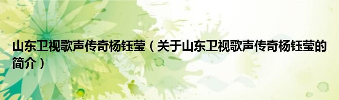 大家好,山東衛視歌聲傳奇楊鈺瑩,關于山東衛視歌聲傳奇楊鈺瑩的簡介很多人還不知道,現在讓我們一起來看看吧!