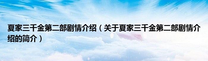 大家好,夏家三千金第二部劇情介紹,關于夏家三千金第二部劇情介紹的簡介很多人還不知道,現在讓我們一起來看看吧!