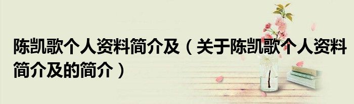 大家好,陳凱歌個人資料簡介及,關(guān)于陳凱歌個人資料簡介及的簡介很多人還不知道,現(xiàn)在讓我們一起來看看吧!