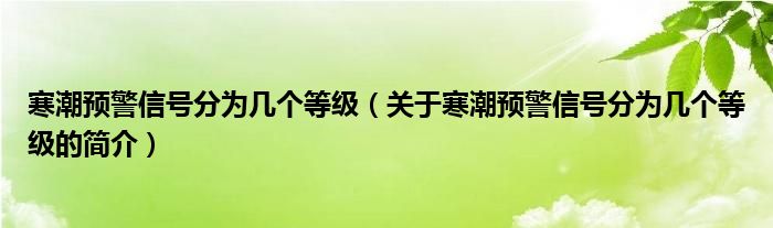 本文關(guān)于寒潮預(yù)警信號分為幾個等級的簡介就講解完畢,希望對大家有所幫助。