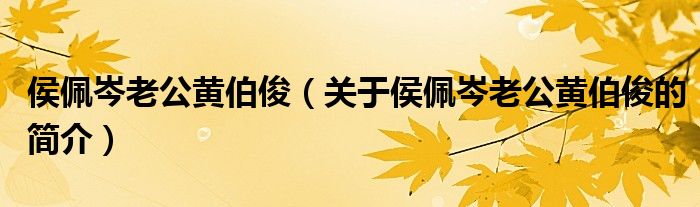 大家好,侯佩岑老公黃伯俊,關(guān)于侯佩岑老公黃伯俊的簡介很多人還不知道,現(xiàn)在讓我們一起來看看吧!