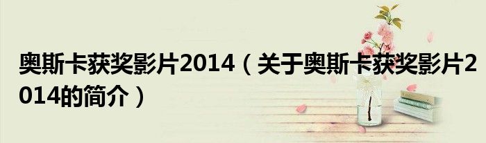 大家好,奧斯卡獲獎影片2014,關于奧斯卡獲獎影片2014的簡介很多人還不知道,現(xiàn)在讓我們一起來看看吧!