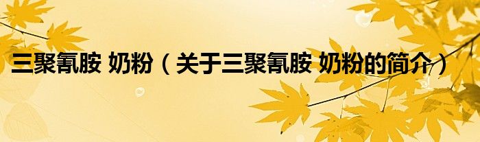 大家好,三聚氰胺 奶粉,關于三聚氰胺 奶粉的簡介很多人還不知道,現在讓我們一起來看看吧!
