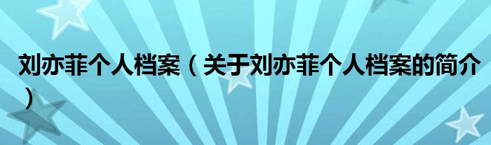 本文關于劉亦菲個人檔案的簡介就講解完畢,希望對大家有所幫助。