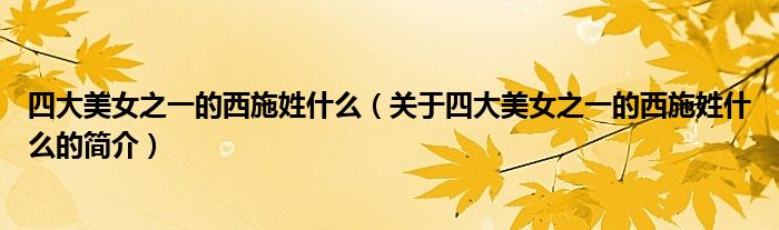 本文關于四大美女之一的西施姓什么的簡介就講解完畢,希望對大家有所幫助。