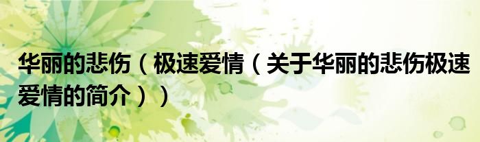 本文關(guān)于華麗的悲傷 極速愛情的簡介就講解完畢,希望對大家有所幫助。