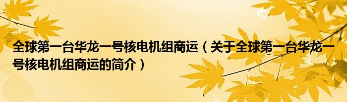 本文關于全球第一臺華龍一號核電機組商運的簡介就講解完畢,希望對大家有所幫助。