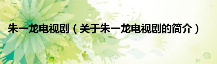 大家好,朱一龍電視劇,關于朱一龍電視劇的簡介很多人還不知道,現在讓我們一起來看看吧!