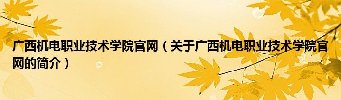 本文關于廣西機電職業技術學院官網的簡介就講解完畢,希望對大家有所幫助。