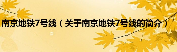 本文關(guān)于南京地鐵7號線的簡介就講解完畢,希望對大家有所幫助。