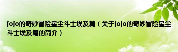 本文關于jojo的奇妙冒險星塵斗士埃及篇的簡介就講解完畢,希望對大家有所幫助。