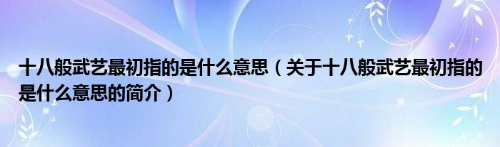 本文關于十八般武藝最初指的是什么意思的簡介就講解完畢,希望對大家有所幫助。