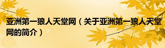 本文關(guān)于亞洲第一狼人天堂網(wǎng)的簡(jiǎn)介就講解完畢,希望對(duì)大家有所幫助。