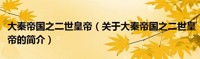 本文關于大秦帝國之二世皇帝的簡介就講解完畢,希望對大家有所幫助。