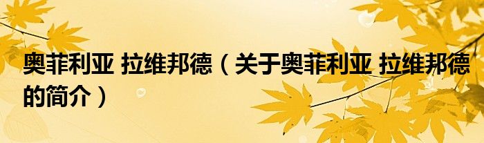 本文關于奧菲利亞 拉維邦德的簡介就講解完畢,希望對大家有所幫助。