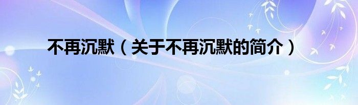 本文關(guān)于不再沉默的簡介就講解完畢,希望對(duì)大家有所幫助。