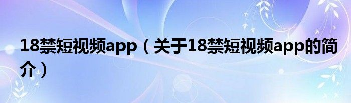本文關于18禁短視頻app的簡介就講解完畢,希望對大家有所幫助。