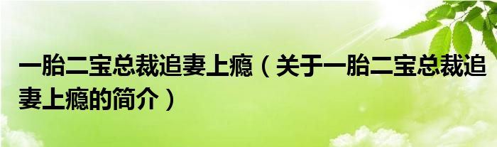 本文關于一胎二寶總裁追妻上癮的簡介就講解完畢,希望對大家有所幫助。