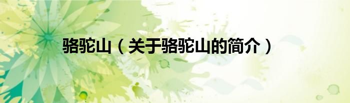 大家好,駱駝山,關于駱駝山的簡介很多人還不知道,現在讓我們一起來看看吧!