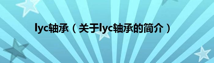 本文關于lyc軸承的簡介就講解完畢,希望對大家有所幫助。
