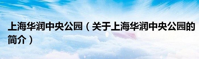 大家好,上海華潤中央公園,關于上海華潤中央公園的簡介很多人還不知道,現在讓我們一起來看看吧!