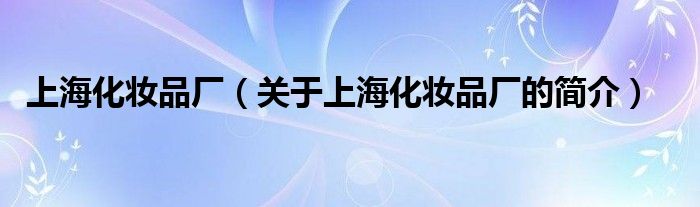 本文關(guān)于上海化妝品廠的簡介就講解完畢,希望對大家有所幫助。