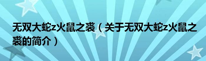 大家好,無雙大蛇z火鼠之裘,關(guān)于無雙大蛇z火鼠之裘的簡介很多人還不知道,現(xiàn)在讓我們一起來看看吧!