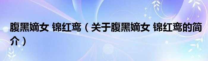 本文關(guān)于腹黑嫡女 錦紅鸞的簡介就講解完畢,希望對大家有所幫助。
