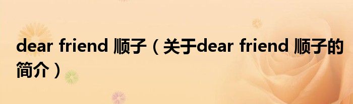 本文關于dear friend 順子的簡介就講解完畢,希望對大家有所幫助。