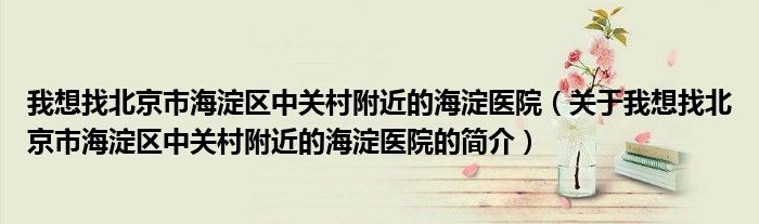 本文關于我想找北京市海淀區中關村附近的海淀醫院的簡介就講解完畢,希望對大家有所幫助。