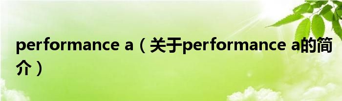 本文關于performance a的簡介就講解完畢,希望對大家有所幫助。