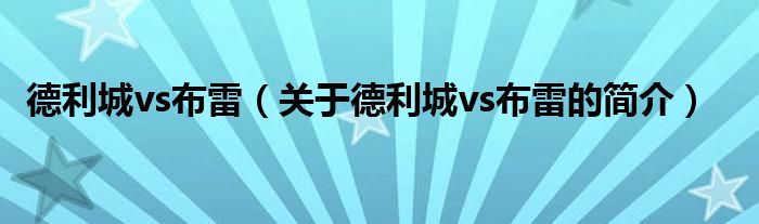 大家好,德利城vs布雷,關于德利城vs布雷的簡介很多人還不知道,現在讓我們一起來看看吧!